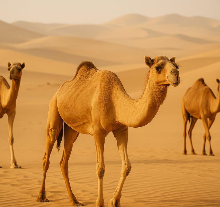 The desert especially interests me: its open space, calm environment, and animals adapted to tough conditions. Camels, in particular, have always impressed me with their strength and endurance.